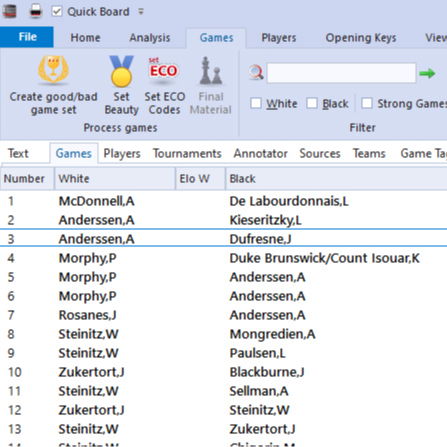 ChessBase is a personal, stand-alone chess database that has become the standard throughoutthe world. Everyone uses ChessBase, from the World Champion to the amateur next door. It is the program of choice for anyone who loves the game and wants to know more about it. Start your personal success story with ChessBase and enjoy the game even more. WHAT YOU CAN DO WITH CHESSBASE: Retrieve games according to openings, players and tournaments; generate tournament cross tables and full graphic statistics of players or openings; “Similarity search” shows all games with similar pawn structures, sacrifice patterns, endgame positions, etc.; “Let’s check”*: access the world’s largest database of in-depth analysis (more than 200 million positions); “Instant Analysis”: Any unannotated game is analysed almost without delay immediately on loading (optional). “Assisted Analysis”: as you enter a game, whenever you click on a piece an evaluation is produced for all its possible target squares; “Tactical Analysis” will annotate game, inserting commentary, variations and diagrams, before strong moves or errors, into a game or an entire database. It will also point out combinations, played in the game or missed, tries, attacks, initiative, and of course the latest in openings theory; Cloud analysis: you can analyse positions simultaneously with several engines from on di©erent computers running in parallel; “Deep analysis”: generates an analysis tree that changes dynamically, as with time weaker variations are dropped; automatic analysis jobs for correspondence games; “Replay Training”: Playing through a game with the notation hidden and automatic training questions with tips for each individual move. Extended reference search for openings shows increase/decrease in popularity and typical recurring endgames; merge games on the fly into an opening tree; Repertoire recommendations for every move with a single click; generate a dossier containing all available information on a specific player from the database; Preparation for opponents with recognition of their weaknesses; generate a comprehensive openings report with main and critical lines, plans and most important games; Urgent news about recently played innovations; Search for characteristic tactical positions in an opening variation single click publication of games on the Internet; Improved search mask with tactical motifs and examples for manoeuvres and material distribution; Completely new search booster for patterns and plans; print games in superb quality with diagrams and multiple columns; Crisp new 3D boards thanks to raytracing technology; automatic update of your local reference database with the weekly installments of games (one year); access to the ChessBase online database with over eight million games*, mobile access with the ChessBase Account The most important innovations ChessBase 17 focusses at things that, in our view, are the foremost of the program's areas of application. First of all, a lot of work has gone into functions that one only notices subconsciously, but which improve the user experience: the new ultra-high-resolution 2D board; the really crisp display of notation and lists through support of Direct 2D which runs on all recent Windows versions; and popular in more recent times: the "Dark Mode".Technical improvements Then there are many technical improvements that generally improve the program, such as: a new faster data format, with fewer files and no search booster - which overcomes limitations of the CBH format; and a fine-tuning of the database paths that solves conflicts with the Documents directory and OneDrive, so you can smoothly manage your databases outside the standard Windows directories. Interactive search mask and much more The smart inputting of positions is of direct chess significance. You place a few pieces onto the board, and immediately see in which games of the reference database this position fragment occurs. By clicking on a game, you can save yourself the rest of the inputting. The new search mask is also more interactive: if you enter a search criterion, the number of games in the database for which it matches is immediately displayed. This way, you know what yield to expect before you click on "OK".The new engine window A lot has also been done in an area that is crucial for daily chess work: the engine window. Most ChessBase users probably spend 90% of their time with interactive analysis of positions. The output of engines has altered little in the last 30 years: variations, evaluations, dry as dust, done. In ChessBase 17, this has been fundamentally re-evaluated. The visual evaluation of pieces and measurement of complexity - you know from Fritz 18. The display of non-trivial threats or temptations is fancy, but also already familiar. The same goes for the training option to suppress the entire engine output, and only receive subtle tips as a stimulus to your own thinking. This is primarily intended for when watching live games.Analysis in natural language However, the interpretation of an engine variation in natural language is groundbreakingly new. It is often a challenge for many players to imagine what is actually happening based on just an engine variation. You see the best move, the rating, and that's it. ChessBase 17 describes in words what the variation entails For example: In a super-sharp position, a complex variation has the strange rating "0.00". ChessBase 17 would then add "perpetual check" or "repetition of the position" and the situation would become clear. Material changes are vividly described: "White wins the queen for rook and knight"; "Black loses two pawns"; and even "The position is simplified into an endgame R+B vs R+N". There are also exciting statements like: "White gains a dangerous passed pawn on e6"; or "White sacrifices a bishop"; "Black has an attack"; "White gets the majority on the kingside"; "Both kings are insecure"; and "Manoeuvre N