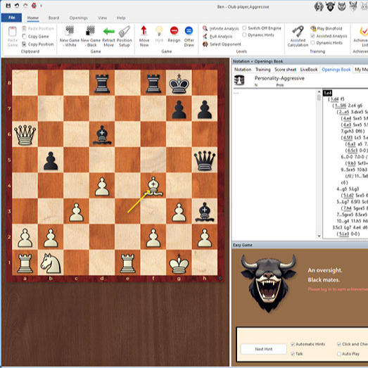 Fritz 18 marked the beginning of a new era, and Fritz 19 drives this development onward: a game against Fritz should be more than just a game - it should be an experience. In a time when online chess dominates, a chess program has to oer something special to be a real alternative to human opponents. In Fritz 19 it works like this There are six different characters that mimic typical club players: Allrounder, Aggressive, Positional, Swindler, Fearful, Endgame Expert. Fritz plays human moves that fit these types, but builds-in tactical mistakes so that you can win with a sacricial attack, for example. The sharper the position, the more likely the program will misstep. There is a wide range of tips and support that you can use to the full, or ignore, depending on your mood. With all the tips, you will practically always win against the “strong club player” level. If you ignore them completely, it becomes challenging for a player like me (ELO 2000). You can earn trophies for special moves that are converted into digital trading cards, such as “rook on the seventh rank”, “exchange sacrifice” or “mate threat”. At any time during the game, you can switch to “assisted calculation” mode. Where is no clock, so you can train your calculation without stress in positions you have played yourself. This has an enormous training benefit. The opponent zoo The character Allrounder is probably the strongest opponent for every level of play. It is a development of “Easy Game” from Fritz 18. Everyone knows the Aggressive Player from their club. They regularly play on the attack, with a sharp opening repertoire. They are the ideal opponent for defence training with Black. The Swindler takes aggressiveness to the extreme, and o!en overplays the position. Material and solid position are of no interest, the main thing is to go for the king. Against this swindling fox, one usually has a material advantage, but suddenly it becomes highly dangerous. The wise owl symbolises the Positional Player. It loves a good pawn structure, a secure king of its own and coordinated piece-play. e distorted echo of this, is the fearful mouse. It appreciates crowded, safe positions and is afraid of complications. That is why it often plays weaker. The Endgame Fan, on the other hand, plays specifically for exchange. Simplification is paramount, the opening is o!en unambitious. When it comes to the endgame, on the other hand, things get really tough. An effective training opponent for this phase of the game! Collectible cards as a reward: Fritz 19 celebrates your good moves. When playing against Fritz 19, you can acquire 136 dierent trophies. Some are quite simple, like Closed Centre or Bishop Pair. You will swi!ly grab them. Others don’t just happen by themselves: the advance of a passed pawn, a knight outpost, an unsafe opponent’s king position, space advantage or a sharp position. The crowning glory are trophies such as queen sacrifice, mate with knight, and many more. There is a ranking list for each of these trophies. That should be reward enough for chess players, but we have come up with something very special, the description of which would go beyond the scope of this article: Winning trophies is rewarded with the distribution of digital trading cards in your ChessBase account. Do you recall Panini sticker albums? Then you know the score. New opening training Active opening training: With Fritz 19 you can load any database, any CBM opening article, or any of your opening analyses directly as an opening book and play against it immediately. Test your repertoire: Share your opening repertoire with Fritz 19 and practise the variations directly in the game against Fritz! More excitement: Try out variations against different styles of opponent, e.g. test a new defence system against the aggressive Fritz 19 Bull, or a new gambit against the timid Fritz 19 Mouse! Practical opponent preparation: Do you have a collection of your next rival’s games? Then play against your opponent's repertoire with Fritz19 as an "all-rounder"! Extraordinary: You don't always want to begin in the starting position: With one click you can decide from which position the opening should be practised. More information: Traditional opening books are short-sighted, showing only moves from the current position. The new database books come with notation and a small control board, which is super helpful with opening articles or fritztrainer, allowing you to see comments on the variations.What else is available The new engine in Fritz 19 is the Computer Chess World Champion for 2023. The Calculation Training has been extended, especially in the important preliminary query of candidate moves. The Buddy Engine and the annotated engine analysis from ChessBase 17 have found their way into Fritz. The notation (and the whole program interface) has been enormously enhanced in places. Tactical Analysis, the important full commentary of your games, has been improved and much more!